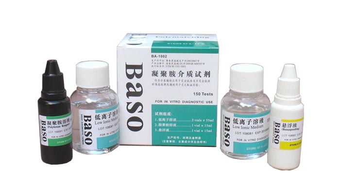 • Furthermore, with addition of Polybrene reagent, which contains high valence cationic polymer and heparin neutralizer, and after dissolving, it will generate lots of positive charges to neutralize the negative charges on the surface of RBC, as well as to lower its zeta potential and shorten the distance among RBC and produce non-specific agglutination. In consequence, non-specific agglutination of normal RBC shall be dispersed by addition of Resuspending Reagent, which can neutralize polybrene, the test result is interpreted as “Negative”. If RBC is sensitized by the corresponding antibody, agglutination will be produced by polybrene and shall not be dispersed, the test result is interpreted as “Positive”.