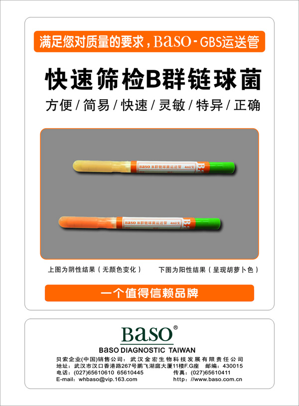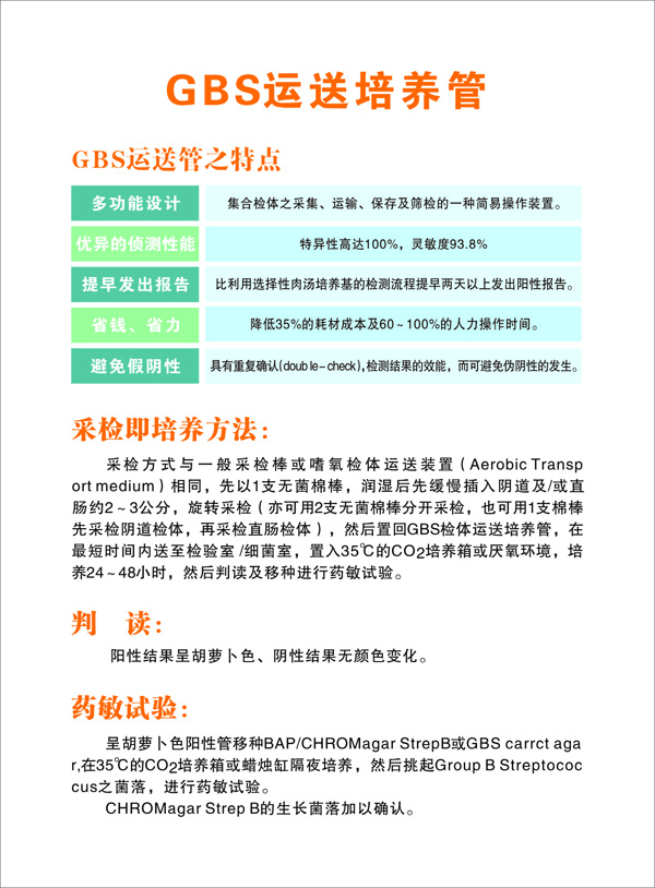 在運(yùn)送培養(yǎng)管內(nèi)含有各種GBS增菌營養(yǎng)成分,選擇性培養(yǎng)基具有促進(jìn)GBS生長繁殖,同時添加了多組抑菌劑和顯色劑,能夠抑制分泌物中其他雜菌的生長和GBS菌顯色。當(dāng)GBS生長繁殖時培養(yǎng)基呈胡蘿卜色反應(yīng),陰性不變色。