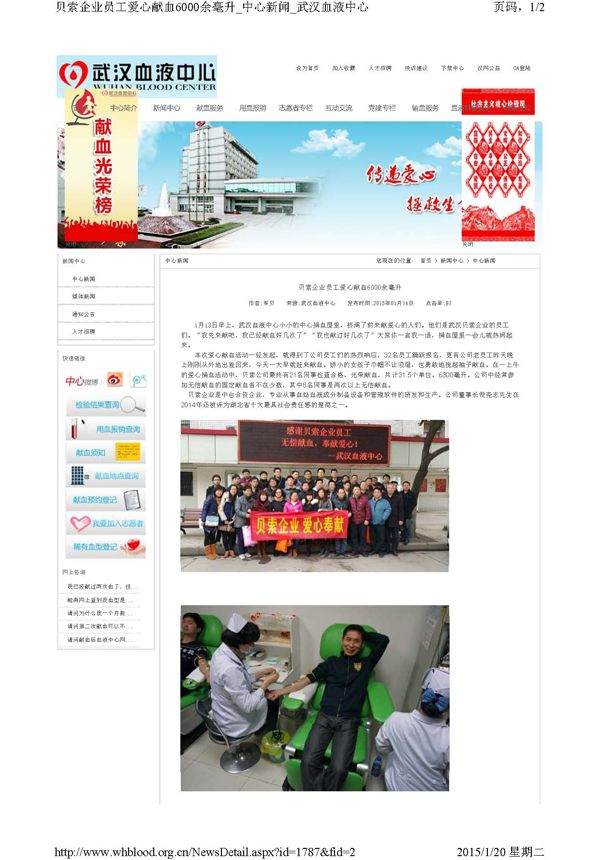 2014年,被評為湖北省十大最具社會責任感的楚商的公司董事長倪堯志先生,對此次獻血活動作出評價說: “我們今天的行動,為更多生命的延續(xù)做出了共獻,對于貝索公司道德風尚乃至于社會主義核心價值觀的弘揚都具有重要意義。與此同時,本次活動也是公司發(fā)展過程中的重要事跡,我公司將一如既往地參與獻血的志愿活動,展示企業(yè)風尚,承擔我們企業(yè)的社會責任感。”