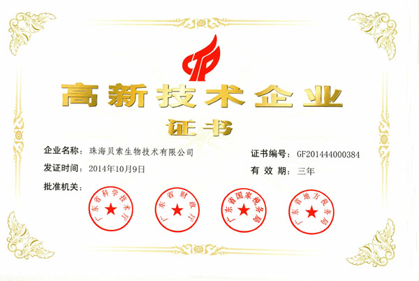 近日,廣東省科學(xué)技術(shù)廳、廣東省財(cái)政廳、廣東省國家稅務(wù)局和廣東省地方稅務(wù)局聯(lián)合下發(fā)了《關(guān)于公布廣東省2014年第一、二批通過復(fù)審高新技術(shù)企業(yè)名單的通知》(粵科高字[2015]31號(hào))文件,珠海貝索生物技術(shù)有限公司順利通過高新技術(shù)企業(yè)復(fù)審(證書編號(hào):GF201444000384)并重獲頒牌。