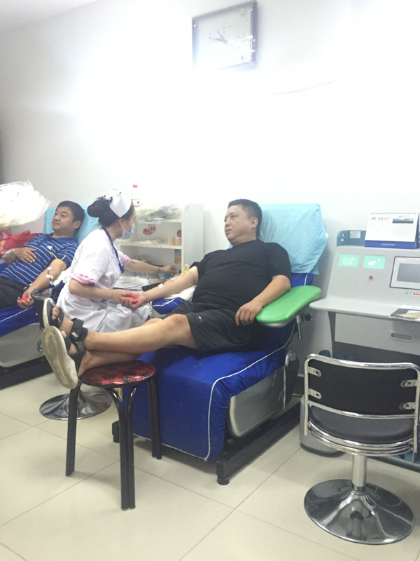 活動進行的兩個小時,最終有16名員工通過體檢,光榮獻血,其中8人捐獻血液400毫升,6人捐獻血液300毫升,2人捐獻血液200毫升,捐獻血液共計27個單位,5400毫升。特別值得表揚的是,來自財務(wù)部的李婭是16位中唯一的女性,盡管身材嬌小,而且是第一次參加獻血,表現(xiàn)得特別勇敢,主動要求獻血300ml。來自工程部的李成林和銷售部的文斌作為無償獻血的?停际5次奉獻了愛心。