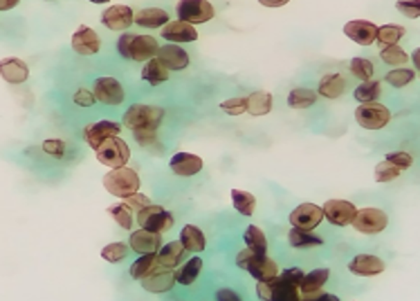 標本經高碘酸氧化后,使真菌和其他機會性生物的細胞壁內的粘多糖暴露出醛基,醛基將六胺銀還原為黑色的金屬銀。硫代硫酸鈉對已顯色的銀鹽起固定作用,并除去未反應的銀離子。