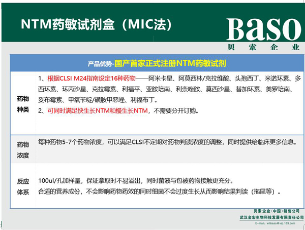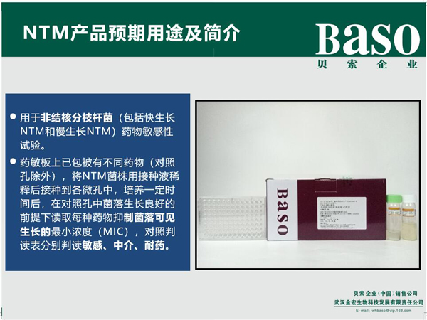非結(jié)核分枝桿菌藥敏試劑盒(NTM)-結(jié)核系列產(chǎn)品-貝索企業(yè):珠海貝索生物技術(shù)有限公司、武漢貝索醫(yī)療器械有限公司、武漢金宏生物科技發(fā)展有限責(zé)任公司、珠海貝索細胞科學(xué)技術(shù)有限公司、江蘇貝索生物工程有限公司