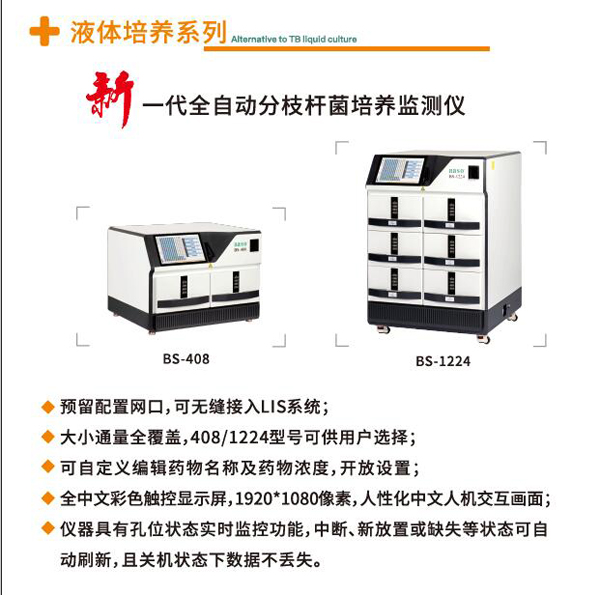 | BX2104 | 全自動(dòng)分枝桿菌培養(yǎng)監(jiān)測(cè)儀 | BS-408 | 臺(tái) | 用于分枝桿菌液體培養(yǎng)、檢測(cè)及藥敏實(shí)驗(yàn) |
