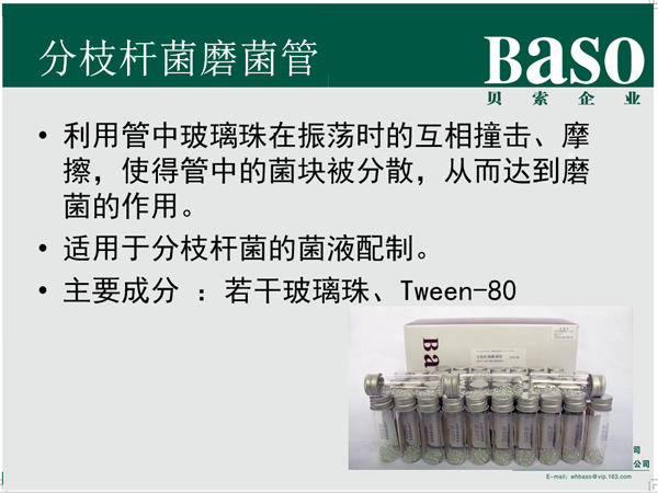 | BC1113A | 樣本稀釋液-I型(磨菌管) | 50支/盒(25mm) | 盒 | 6月 | 用于分枝桿菌的菌液配制 |
